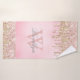 Parties scintillant dorée rose rose moderne, girly rousse goutte nom personnalisé serviette de bain monogrammed. Ce design présente des gouttes de parties scintillant brillante rose rose pastel clair et or jaune sur arrière - plan d'aquarelle rose avec nom et monogramme modèle texte. Le nom est écrit une jolie police de style en lettres à la main élégante. Un cadeau féminin parfait pour la fête d'anniversaire, mariage, douche nuptiale, fête de 16 ans et baby shower pour tous ceux qui aiment les jolies choses glam. Si vous avez besoin d'aide ou d'articles correspondants, veuillez me contacter.