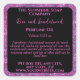 Un étiquette pour les bouteilles à rouleaux de parfum avec un design de parties scintillant noir et faux magenta.