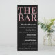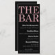 Ce menu de bar personnalisé présente un design sophistiqué de parties scintillant noires et roses. Le titre, "The Bar" est imprimé en haut dans une grande police de style parties scintillant rose sur un arrière - plan noir solide. Une liste de cocktails et de boissons est imprimée en blanc ci-dessous. Il est parfait pour toute fête ou événement.