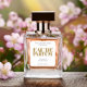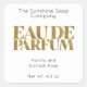 Un étiquette blanc pour les bouteilles de parfum avec les mots "Eau de Parfum" en parties scintillant or et espace pour le nom de votre entreprise, l'odeur du produit et la taille du produit.