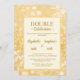 Marquez l'occasion avec sophistication et style en utilisant notre "Parties scintillant d'or double anniversaire Soiree Invitation". Parfait pour célébrer le double de la joie, cette invitation exhale élégance et charme. Avec son design raffiné et son charme intemporel, il ouvre la voie à une célébration mémorable qui sera chère pour les années à venir. Qu'il s'agisse d'une fête d'anniversaire conjointe pour frères et soeurs, jumeaux ou amis proches, cette invitation capte l'essence de la célébration d'une manière à la fois classique et contemporaine. Faites savoir à vos invités qu'ils sont là pour une expérience inoubliable avec cette invitation qui en dit long sur l'élégance de votre événement.