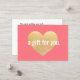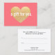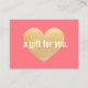 Design amusant et mémorable avec image numérique de coeur de parties scintillant d'or. Une carte cadeau super mignonne sous le déguisement d'un certificat cadeau pour les deux parties. Pour plus de matériel marketing de mise en correspondance, de conception personnalisée ou de demande de logo, veuillez me contacter à maurareed.designs@gmail.com et je répondrai dans les 24 heures. Pour l'expédition, cardstock demande et prix contactez Zazzle directement.