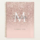 Parties scintillant en or rose simple, nom de script élégant, avec une initiale en monogramme sur un planificateur arrière - plan rose pâle 2023. Conçu par Thisisnotme©
