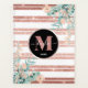 le design sur le devant de ce carnet de planificateur quotidien commence par des rayures d'évent alternantes de parties scintillant chatoyante en or rose et de blanc foncé, avec une étroite bande blanche séparant les larges rayures de parties scintillant au centre, ce qui donne une sorte de rayure chatoyante. Deux coins fleurissent avec des bouquets de fleurs roses d'aquarelle, mêlés à des sprigs d'eucalyptus, des branches d'oliviers et d'autres éléments botaniques verts. au centre se trouve une lettre monogramme personnalisable rose mauve poussiéreuse, assise dans un cercle noir avec bordure de blanc et métal rose rose quartz faux dégradé. L'arrière présente une page entière de parties scintillant en or rose, avec un petit cercle noir pour votre nom en bas, et l'année juste au-dessus.