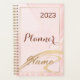 parties scintillant or rose nom monogramme 2023 planificateur. Un arrière - plan métallique à l'apparence d'or rose. Personnalisez et ajoutez un an, et ajoutez un nom. Le nom est écrit en or avec un grand script moderne de style lettré. Parfait pour l'école, le travail ou l'organisation de votre vie personnelle, familiale.