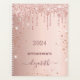 Un faux rose or à l'apparence métallique arrière - plan avec élégantes gouttes de parties scintillant d'or faux rose, look goutte à goutte de peinture. Personnalisez et ajoutez une année, un titre et un nom. Le nom est écrit en or rose foncé avec un grand script de style à la main moderne. Parfait pour l'école, le travail ou l'organisation de rendez-vous, votre vie personnelle/familiale. Pour que les swashes ne suppriment que le nom de l'échantillon, laissez les espaces ou les émoticônes devant et après le nom