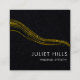 Un carte de visite carré branché avec un swish de parties scintillant en faux or sur un stock de carte noire. Vos coordonnées, y compris le téléphone, le courriel, le site Web et la poignée des médias sociaux sont à l'envers. Vous pouvez customiser plus loin pour supprimer les icônes des médias sociaux que vous n'utilisez pas, et repositionner les icônes si nécessaire.