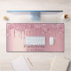 Faites bonne impression avec ce tapis de bureau chic avec des gouttes de faux parties scintillant rose et votre nom dans un script branché contre un arrière - plan de faux papier rose. Parfait pour les salons de beauté, les salons à ongles, les maquilleurs, les coiffeurs et les esthéticiennes.