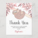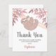 Carte de remerciements de Baby shower Budget Parties scintillant rose. Ce charmant Carte de remerciements de Baby shower Budget dispose d'une jolie parties scintillant rose en or, en paresse bébé accrochée à un arbre et feuilles aquarelle dans les tons roses. Customisez ce carte de remerciements avec votre nom et votre message. Parce que nous créons notre propre oeuvre, vous ne trouverez pas cette image exacte d'autres designers. Aquarelle originale © Michele Davies.