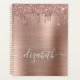 Élégant et girly planner sur mesure avec parties scintillant en or rose dégoulinant contre un arrière - plan en or rose faux feuille métallique. Personnalisez avec votre nom dans un élégant script blanc tendance avec des swashes.
