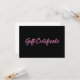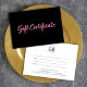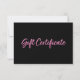Ce certificat cadeau comporte les mots "Certificat cadeau" en parties scintillant faux rose contre un arrière - plan noir sur le devant. Personnalisez-le en remplaçant le texte de l'espace réservé et l'image de l'espace réservé par votre propre logo. Pour plus d'options comme changer la police, sa taille et l'espacement entre les lettres cliquez sur le bouton "Personnaliser". *Veuillez noter que le filigrane Zazzle qui apparaît dans l'aperçu du zoom n'apparaîtra PAS sur le produit imprimé final. © Bois de rose et agrumes