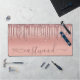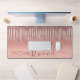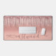 Un élégant tapis de bureau moderne et tendance avec parties scintillant en or rose est posé sur un arrière - plan rose sombre avec votre nom dans un joli type de script.