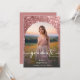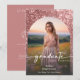 Célébrez en style avec cette faire-part de graduation glamour, moderne et artistique, conçue avec une flambée amusante qui vous concerne. Avec votre photo préférée en forme d'arc sous une superposition légèrement sombre et surlignée, le devant capte votre lueur et le moment. L'arrière - plan présente un graphique de parties scintillant rose rose pétillant. Retournez-le pour trouver tous vos détails personnalisés affichés sur un arrière - plan rose rose qui est chic sans effort. C’est la meilleure façon de partager vos grandes nouvelles avec flair! Ce design est parfait avec des photos qui comprennent des arrière - plans roses, roses, crème ou blancs. Créé par Simply Farmhouse Press.