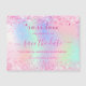Un arrière - plan holographique branché aux couleurs pastel unicorne et arc-en-ciel rose, violet, or rose, vert menthe. Décoré avec de la poussière de parties scintillant en rose. Personnalisez et ajoutez une date et un nom/Quinceañera (ou tout âge). Le texte : Save the Date est écrit avec un grand script de style à la main tendance.