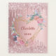 Un arrière - plan métallique rose vif. Faux gouttes de parties scintillant, la peinture goutte à goutte comme décoration. Un coeur doré orné de fleurs roses. Personnalisez et ajoutez un nom et une année. Le nom est écrit un rose moderne couleur or foncé écriture manuscrite. Parfait pour les devoirs scolaires, retour à l'école.