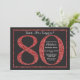 Invitation surprise 80e anniversaire. Invitation de fête d'anniversaire de la Parties scintillant noire et rouge avec Arrière - plan Chalkboard. Anniversaire surprise. Anniversaire adulte. Fête Anniversaire Bash.