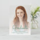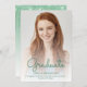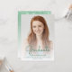 Faire-part moderne branché avec photo verticale personnalisée. Le mot "Graduate" apparaît dans la superposition du script d'écriture manuscrite verte, avec le nom du diplômé, l'école et l'année de graduation ci-dessous dans la police sans serif. Remplacez facilement l'image de l'échantillon par la photo de votre diplômé. Un écran de dégradé blanc permet de s'assurer que le texte s'affiche. Ajoutez des détails sur les réalisations de votre diplômé et les plans d'avenir à l'envers, qui comprend une bordure en fausse parties scintillant verte sur un arrière - plan ombragé.