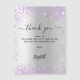 Un arrière - plan faux argenté, décoré de parties scintillant faux violet, brille. Script écrit à grande main et texte : Merci. Personnalisez et ajoutez votre note de remerciement et votre nom.