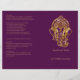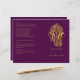 Ce design élégant, appelé Purple and Gold Parties scintillant Indian Mariage, a un arrière - plan violet. Sur le devant, il y a un design de bordure de style parties scintillant dorée avec Lord Genesha au centre pour écarter tout obstacle. Vers le bas est le nom du couple en or. Le dos a un arrière - plan violet avec votre texte en or. Cet ensemble a des invitations, enregistrer les cartes de date, les cartes de réponse, les cartes de remerciement, les cartes de numéro de table, les étiquettes de vin, les programmes de mariage, et beaucoup d'autres articles de papeterie mariage de jour, les faveurs et les cadeaux à coordonner. Tous les éléments sont imprimés sur nos produits de haute qualité, ils n'incluent pas d'or, de bijoux, de gaufrage ou d'autres éléments textiles. Tous les dessins sont copyright Noteable Expressions, Inc. Tous droits réservés.