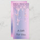 Design moderne et élégant de certificat cadeau avec des gouttes violettes en faux parties scintillant, ciseaux holographiques et police de calligraphie élégante.