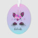 Les licornes sont magiques et Noël aussi ! Obtenez cet ornement de conservation mémorable pour cette personne spéciale dans votre vie. Il a un contour d'un visage de licorne avec des cils. Il est posé sur un arrière - plan de couleur sombre. Personnalisez avec un nom.
