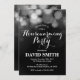 Carte d'invitation de partie de pendaison de crémaillère avec l'arrière - plan argenté de parties scintillantes. Pour davantage de personnalisation, cliquez sur svp la "personnaliser il" bouton et utilisez notre outil de conception pour modifier ce modèle.