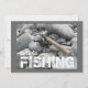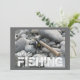 Une canne à pêche avec la bobine s'étend sur les grands rochers ronds le long d'une berge. Customisez les côtés avec votre société ou les informations sur l'événement pour n'importe quel voyage de pêche d'avantage de Derby ou de société.