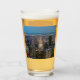 Un verre à pinte spécial avec une photo de l'horizon de New York la nuit et le logo Tourist dans votre ville sur le dos.