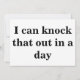 Carte blanche standard avec "No Problem !" sur le devant et "I can knock out in a day" sur le dos. Le texte est en gros caractères noirs gras des deux côtés.
