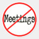 No Meetings humour de bureau sarcastique slogan en lettres déformées avec un cercle rouge et une ligne. Ne vous laissez pas piéger dans une réunion au travail, montrez-leur ce que vous ressentez vraiment avec ce dicton drôle.