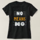 Le T-shirt "No Means No" est une puissante déclaration qui plaide pour le consentement et le respect. Avec l'expression simple "Non signifie non" affichée en évidence, cette chemise sert de rappel audacieux de l'importance de respecter les frontières et de rejeter toute forme d'avances indésirables. Avec son message clair et sa conception simple, il vise à promouvoir la sensibilisation et le soutien aux principes du consentement et de l'autonomie corporelle.