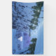 Un paysage d'imaginaire 3D rempli de neige scintillante et de lumières féeriques magiques. Une rangée de lampes brillantes argentées illumine le sentier à travers un col enneigé ourlé de falaises rocheuses escarpées. Le sentier enneigé et étincelant est ourlé de sapins foncés. A l'extrémité du flot, un château de fées translucide et brillant attend le voyageur enchanté dans son voyage vers le pays des fées.