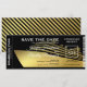 Billet de passe d'embarquement en croisière carte de sauvegarde date comprenant un fond noir élégant, une silhouette de bateau de croisière en feuille d'or fausse élégante et un modèle de texte fantaisie facile à personnaliser.