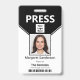 Téléchargez facilement votre propre photo et code à barres. badge de presse personnalisé avec logo de l'entreprise, photo ID et code à barres. Customisez le titre du poste, votre nom et le nom de l'entreprise à vos besoins. Reverse a "If found return to" info. Appuyez sur le bouton Pass Logo Photo et Code barre Badge. Cette photo modèle et le code QR sont à des fins de démonstration seulement.