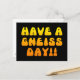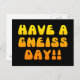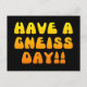 Passez Une Journée Gneiss ! ! - lettrage jaune-orange sur une carte postale noire.