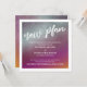 Cette conception comprend une police de script manuscrite moderne utilisée pour créer un graphique qui dit "nouveau plan". Une couche subtile d'aquarelle a été placée en haut, ajoutant de la texture. Sous ce graphique, j'ai ajouté une autre image : un dégradé d'ombre dans une palette de fruits de la passion aqua, framboise et or. Vous pouvez faire pivoter cette image pour différents effets, si vous le souhaitez. (Vous verrez que j'ai fait ceci au verso de la carte, qui peut également être changée si nécessaire.) Vous pouvez également choisir de supprimer la couche d'aquarelle texturée pour un traitement de surface plus lisse. Pour ajouter un effet audacieux, j'ai placé une épaisse bordure blanche autour des bords de l'avant de la carte. Utilisez les champs modèles pour ajouter vos détails personnels et faire de ce design unique et moderne votre propre. Veuillez communiquer avec toute demande spéciale ou customiser de l'aide. // 100 //