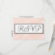 Arrière - plan minimaliste pastel blanc d'aquarelle avec RSVP écrit dans élégant script gris foncé à l'intérieur de rectangle géométrique blanc et noir. Personnalisez les détails de l'arrière en typographie noire contre un arrière - plan blanc immaculé. Oeuvre originale et design de TamiraZDesigns.