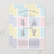 Notre collection "Pastel Color Block Baby shower" présente des blocs de couleur pastel clair combinés à des feuilles décoratives "bébé" en deux feuilles de votre choix, argent et or, jumelées à une police serif élégante pour toutes vos informations. Consultez notre magasin pour plus d'articles de cette collection.