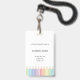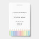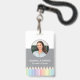 Améliorez l'image professionnelle de votre école grâce à notre badge d'identification de professeur d'arc-en-ciel coloré photo moderne. Ce badge d'identification est un design simple mais attrayant, avec d'adorables crayons arc-en-ciel couleur pastel et un modèle photo rond pour une personnalisation facile. Vous pouvez également ajouter les détails de votre école à l'arrière. C'est le badge parfait pour les enseignants de maternelle, de maternelle ou d'école primaire. Utilisez une photo de portrait, pour de meilleurs résultats, considérez les mêmes proportions que l'échantillon photo. Conception par Ana Garza/Kardz Studio. Si vous avez des questions, veuillez me contacter par l'intermédiaire du Conversation Zazzle.