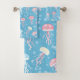Upgrade your bathroom aesthetic with a luxurious touch by adding this stunning bathroom towel set adorned with a seamless pastel blue and pink jellyfish design.