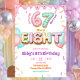 Pink Blue Pastel Donut 67 8th Girl Birthday Invitation, She Is Not 67 She Is 8 Birthday Invite, Editable Kids 8th Birthday Party