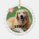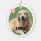 Gardez votre bébé en fourrure avec vous après qu'ils ont traversé le pont arc-en-ciel avec cet Empreinte de patte Pastel Photo Pet Memorial Ornement. Ajoutez une photo de votre chien bien-aimé dans un ornement pour toutes les saisons. Ce design unique encadre votre ami canin sur une photo avec son nom, empreintes de pattes pastel, un coeur et aide à les garder éternellement dans nos coeurs.