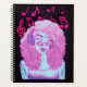 Amant de la musique aux gros cheveux fille vaporwave graphique esthétique dans les tons rose, violet et bleu.
