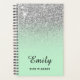 Design de texte de police de caractère cursif noir et élégant personnalisé. Le style de police pour le texte 2022 Planner présente un style moderne tout casquette avec un peu d'espacement des lettres. Arrière - plan photo à parties scintillant argent tendance avec un dégradé gris clair et deux faux graphismes brillants. Fille pastel menthe vert et argent gris faux parties scintillant ombre design pour elle.