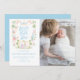 This birth announcement features a nativity image of baby Jesus sleeping in a manger with Mary and Joseph in the center surrounded by a the wise men and two angels. The top has a greeting that says "For unto us a child is born." This would make a great Christmas card to announce the arrival of a new baby.