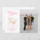 This Christmas card features a nativity image of baby Jesus sleeping in a manger. The top has a greeting that says "Hark the Harold Angels Sing." You can personalize with names and a year.