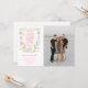This Christmas card features a nativity image of baby Jesus sleeping in a manger with Mary and Joseph in the center surrounded by a the wise men and two angels. The top has a greeting that says "Hark the Harold Angels Sing." You can personalize with names and a year.
