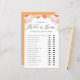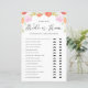 Devine qui l'a dit. La mariée ou le marié ? Répondez à ces questions pour en savoir plus ! Ajoutez cette carte de jeu de douche botanique amusante et ludique à votre événement. Il présente des illustrations aquarelle de pêches, des fleurs roses avec un accent verdoyant. Vous pouvez personnaliser la carte en ajoutant des textes. Cette carte de jeu botanique pastel He Said, She Said est parfaite pour les mariages du printemps et de l'été et les douches nuptiales.