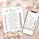 Pastel Pink Boho Fleur sauvage carte de jeu nuptia