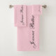 Pastel Pink Élégant Nom manuscrit Signature Ensemble De Serviettes De Bain. Vous pouvez choisir d'ajouter votre nom, le nom d'un proche ou un message spécial. Qu'il s'agisse d'un cadeau sincère pour quelqu'un qui vous est cher ou d'un régal personnel, vous avez le choix. Vous pouvez également supprimer la personnalisation et profiter du design élégant et minimal.